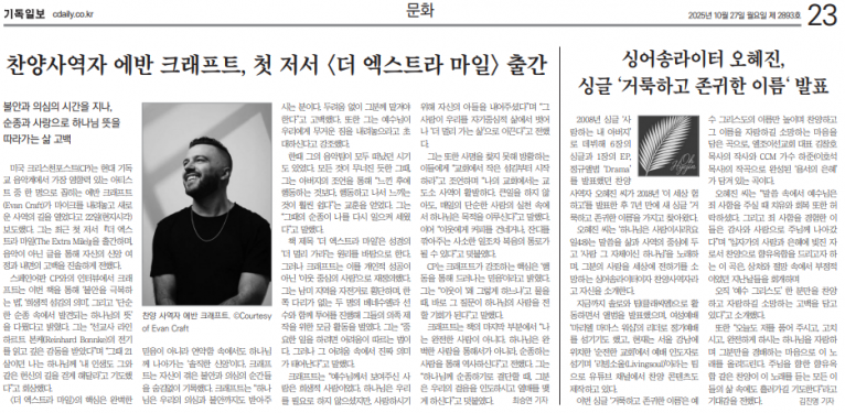 [기사] 싱어송라이터 오혜진, 싱글 ‘거룩하고 존귀한 이름‘ 발표(기독일보)