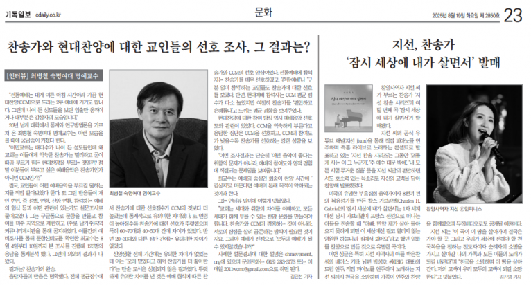 [기사] 지선, 찬송가 ‘잠시 세상에 내가 살면서’ 발매(기독일보)